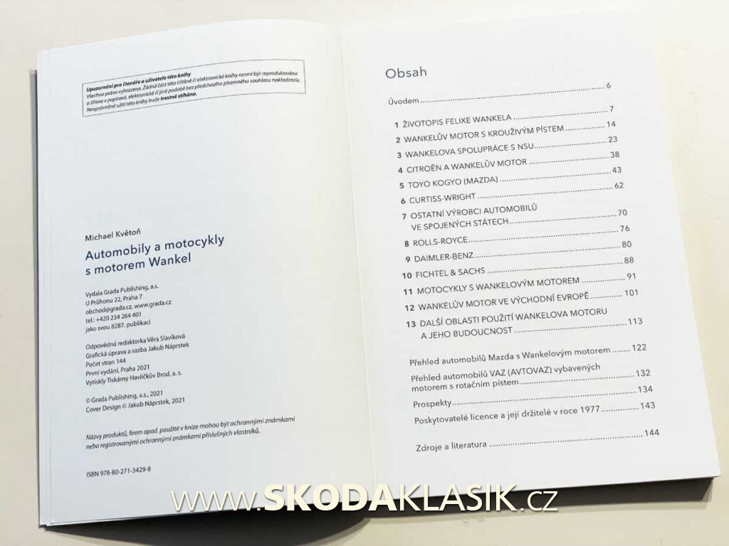 Nakladatelství GRADA nám přináší knihu Automobily a motocykly s motorem Wankel, ale málo kdo ví, že i značka ŠKODA a ÚVMV v letech 1964 až 1967 experimentovaly s Wankelovým motorem ve voze ŠKODA 1000 MB. Více se dočtete v knize na str.111.