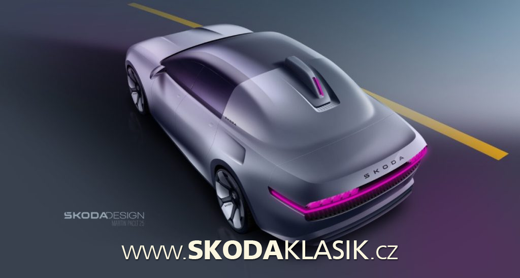 Zároveň však vize dostala i některé moderní prvky, jako třeba čtyřokou grafiku světlometů vpředu, kapotu s prolisem a logem Škoda či výrazné světelné lišty přes celou šířku přídě i zádě. Ty zároveň odkazují na design původního modelu: chromovanou lištu vpředu a výdech horkého vzduchu vzadu.
