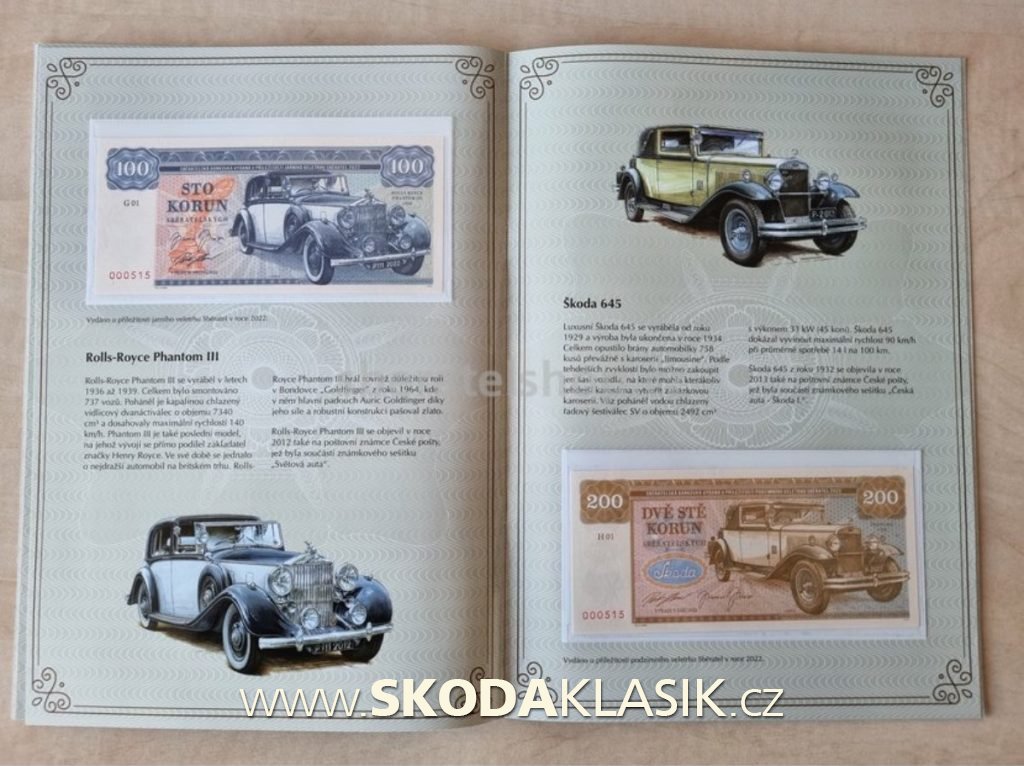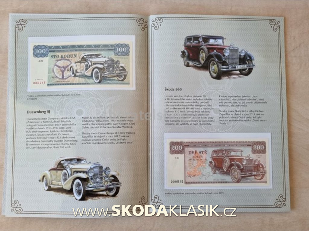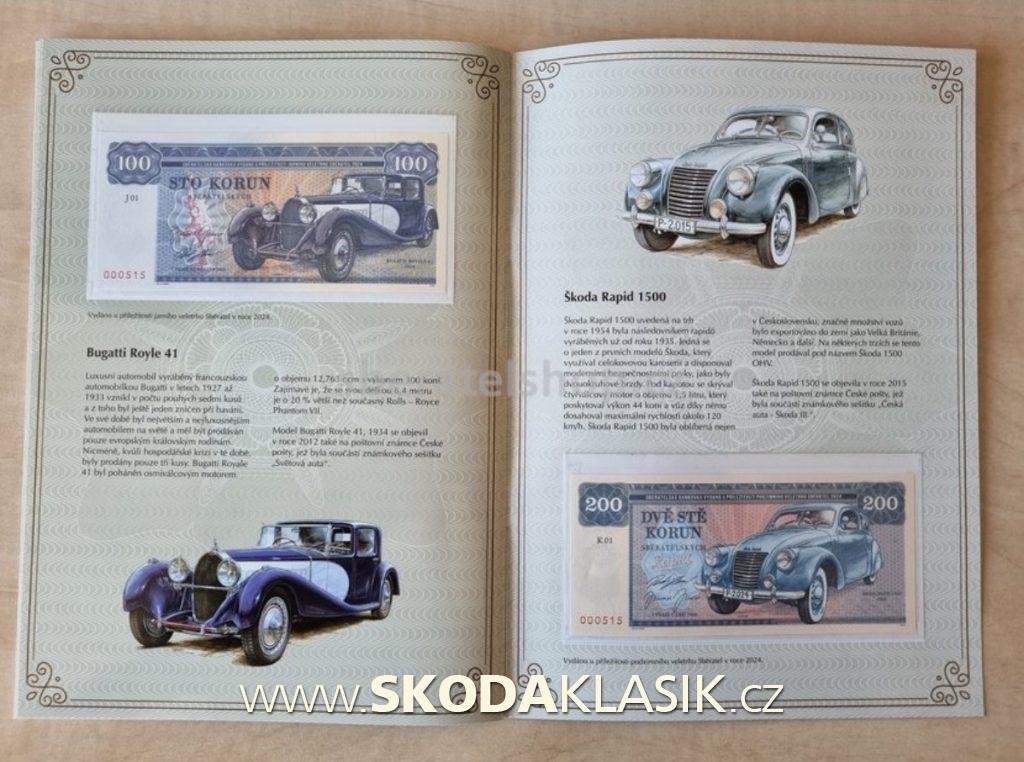 Celkem bylo plánováno 12 bankovek s použitím originální kresby automobilu od Václava Zapadlíka, vždy dvě do roka, u příležitosti jarního a podzimního veletrhu Sběratel. Úvodní měla premiéru na jarním veletrhu Sběratel v roce 2019, poslední pak na podzimním veletrhu Sběratel 2024.