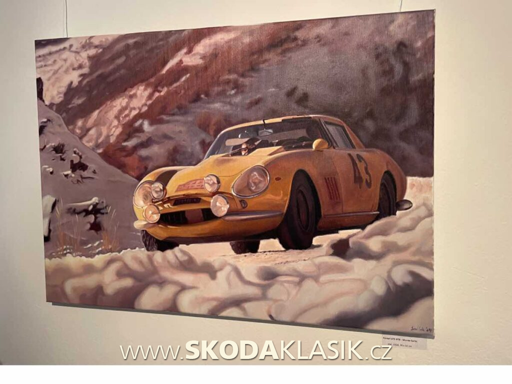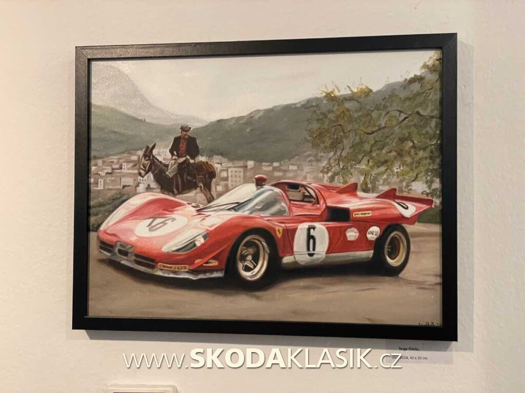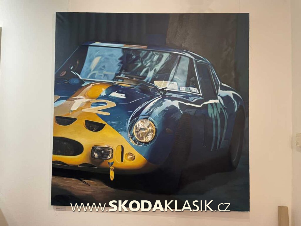 Malíř ve svých dílech zachycuje nejen automobily v akci, ale zvláště nás zaujaly namalované jen části, detaily historických vozů. Ať je to Ferrari, Lamborghini, nebo žena v mokrém Citroenu D, kde jsou úžasně vyvedené kapky po dešti.