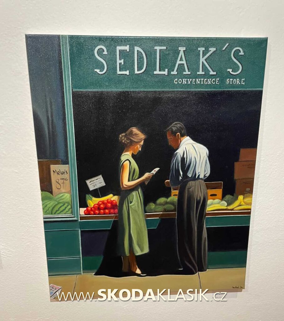 Malby od Romana Sedláka nás zaujaly natolik, že jsme si od něho nechali namalovat naše historické vozidlo ŠKODA 1000 MBT z roku 1968. Z našeho pohledu ho ztvárnil zcela autenticky, jako všechna svá díla.