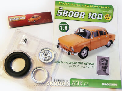 Časopis č.98 stavebnice modelu ŠKODA 100 firma DeAgostiny nám přináší rezervní kolo a montáž karoserie a podvozku. V příštím čísle č.99 naleznete: