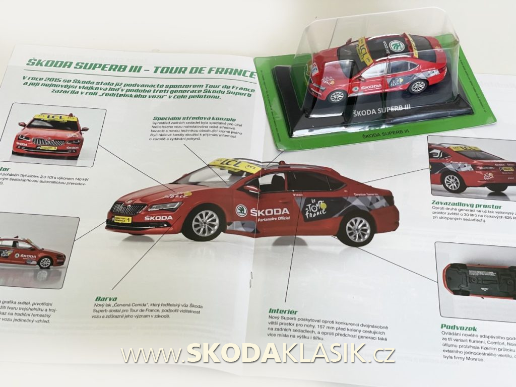 Firma DeAGOSTINI přinesla do stánků časopis č.109 s kovovým modelem ŠKODA Superb III TdF , který je součástí exklusivní kolekce KALEIDOSKOP SLAVNÝCH VOZŮ ŠKODA.