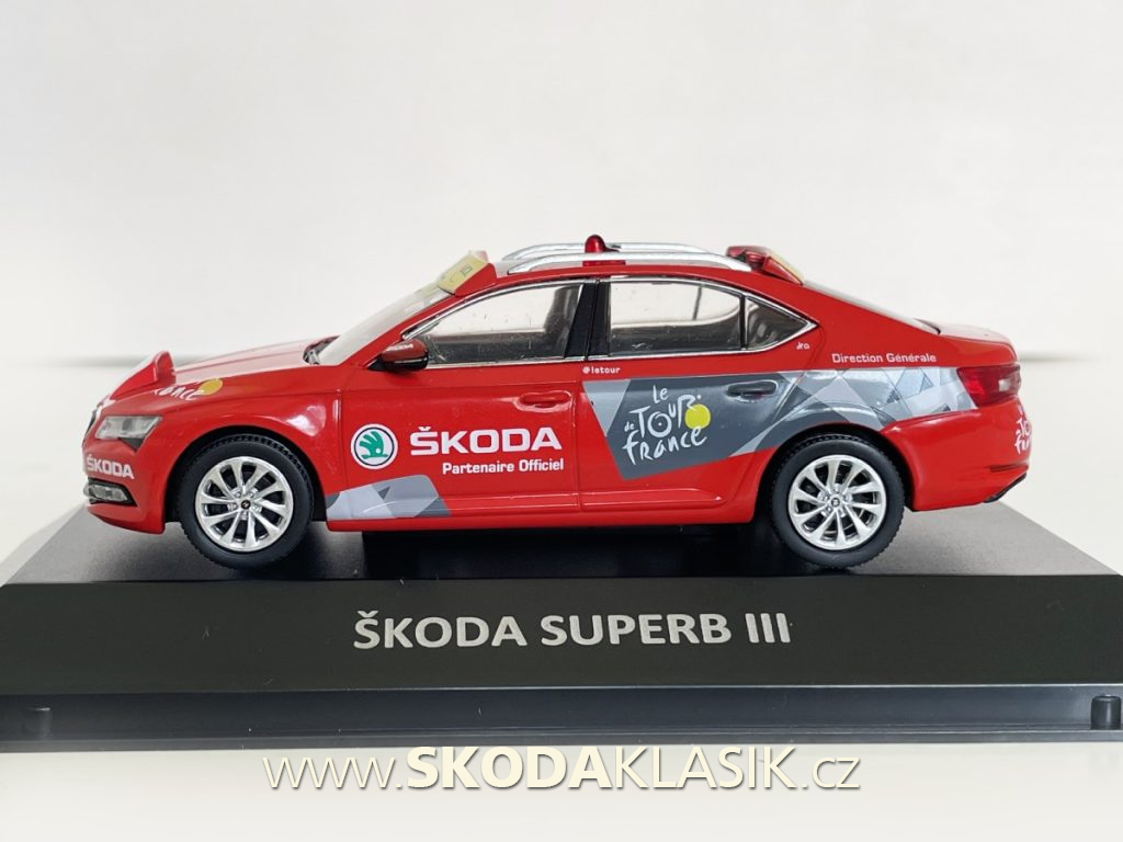 Celkem čtyři vozy nové generace modelu ŠKODA Superb budou v akci při letošní Tour de France jako tzv. „Red Car“ – vůz ředitelství závodu. Vozidla byla včera na české ambasádě v Paříži předána organizátorovi závodu, Amaury Sport Organisation (A.S.O.). ŠKODA je od roku 2004 oficiálním partnerem a dodavatelem oficiálního vozu Tour de France. Český výrobce automobilů poskytne v letošním roce k dispozici celkem 250 vozů – jde především o typy ŠKODA Octavia Combi a ŠKODA Superb.