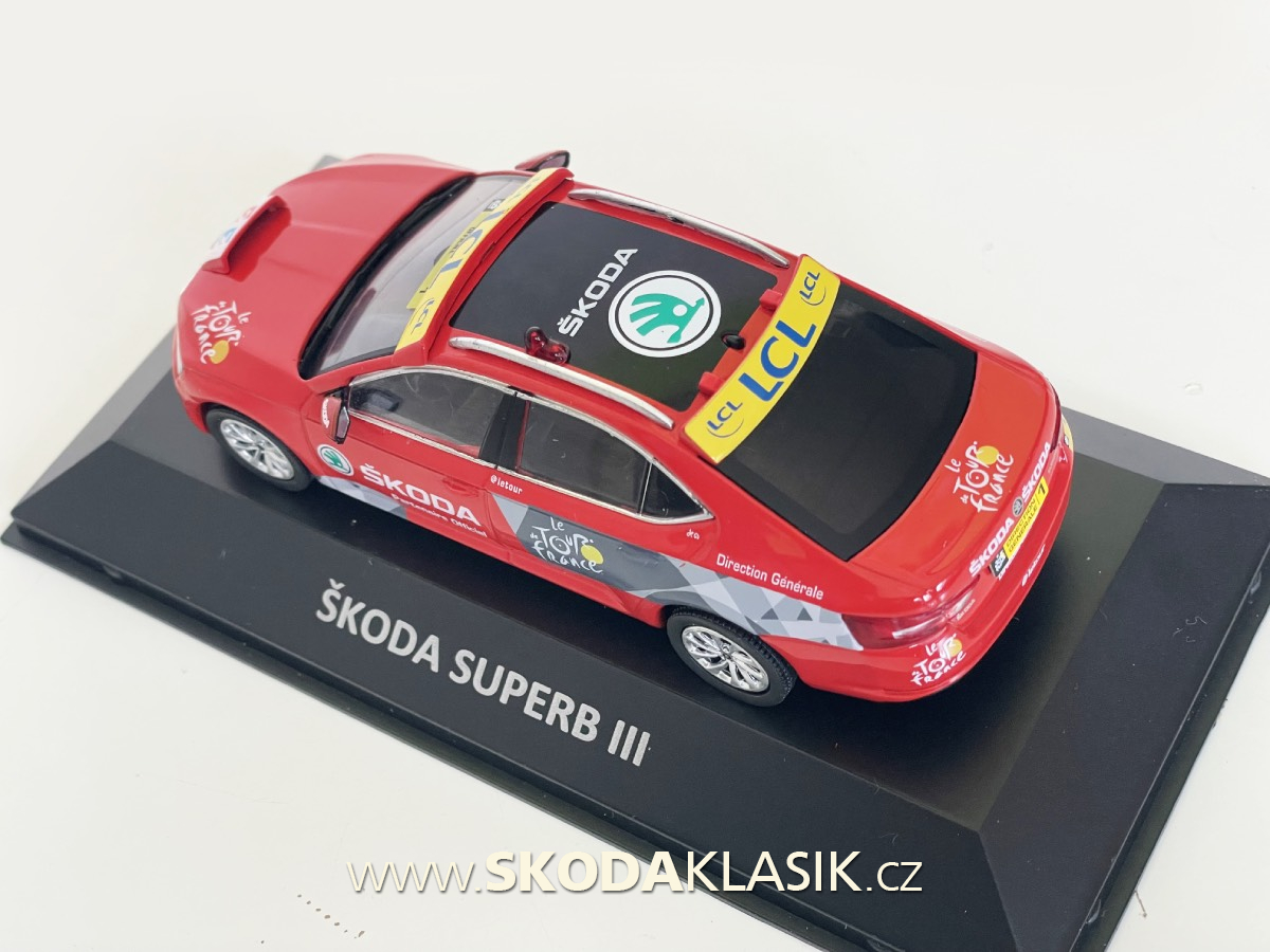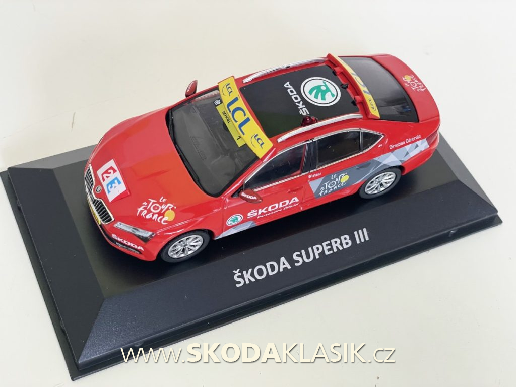 Celkem čtyři vozy nové generace modelu ŠKODA Superb budou v akci při letošní Tour de France jako tzv. „Red Car“ – vůz ředitelství závodu. Vozidla byla včera na české ambasádě v Paříži předána organizátorovi závodu, Amaury Sport Organisation (A.S.O.). ŠKODA je od roku 2004 oficiálním partnerem a dodavatelem oficiálního vozu Tour de France. Český výrobce automobilů poskytne v letošním roce k dispozici celkem 250 vozů – jde především o typy ŠKODA Octavia Combi a ŠKODA Superb.