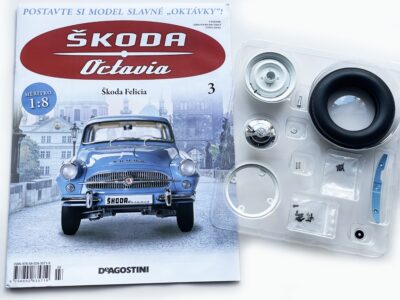 Časopis č.003 stavebnice modelu ŠKODA Octavia v měřítku 1:8 od firmy DeAgostiny přináší další díly modelu. V balení se nachází přední spodní díl ...