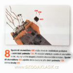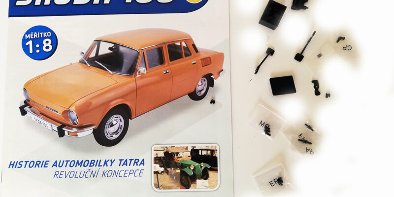 Velké množství dílů obsahuje interiér vozidla, kde výrobce stavebnice modelu ŠKODA 100 firma DeAgostiny opravdu ukázala co je možné v měřítku 1:8. Časopis č.40 přináší spojkový a brzdový pedál, který po lehkém zmáčknutí rozsvítí brzdová světla. Dále do modelu namontujeme baterii.