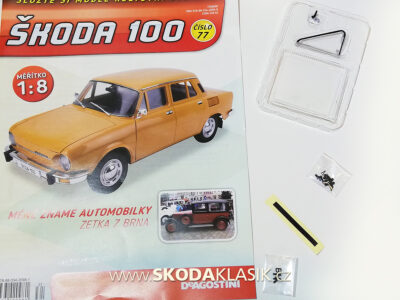 Časopis č.001 stavebnice modelu TATRA 603 firma DeAgostiny přináší první část, kterou je přední kapota včetně chromových doplňků.