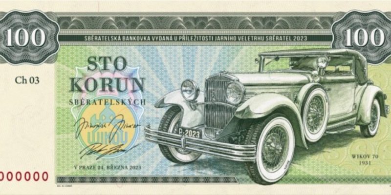 Vyšla nová sběratelská bankovka ze série „Zlatá sbírka Václava Zapadlíka“. Je věnována legendární automobilu WIKOV 70 v celkovém počtu 3 000 kusů, rozdělených opět do sérií 01 až 03.