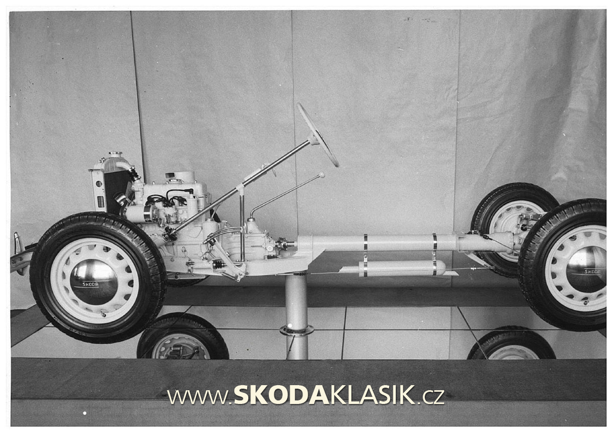 Škoda 1101, jejíž konstrukce a design vycházely z předválečné Škody Popular, byla vybavena čtyřtaktním řadovým čtyřválcovým motorem o zdvihovém objemu 1089 cm3, výkonem 32 koní a kompresním poměrem. Byl spojen se čtyřstupňovou převodovkou, která umožňovala vozidlu dosáhnout rychlosti až 100 km/h.