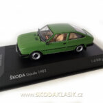 Prvním modelem je sériová ŠKODA 743 Garde z roku 1983 v zelené barvě. Limitovaný model má ručně malovaný interiér, který i u modelu v měřítku 1:43 vypadá hodně věrohodně. Každý model dělají detaily. Zde za zmínku stojí přední stěrače z leptaného dílu či zadní zástěrky s nápisem ŠKODA.