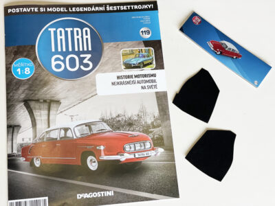 Časopis č.119 stavebnice modelu TATRA 603 od firmy DeAgostiny přináší díly koberec interiéru část 3. V příštím časopisu č.121 naleznete: