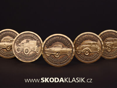 › ŠKODA AUTO uvádí do oběhu 500 putovních mincí s pěti ikonami z historie značky › Mince doplňují putovní známky ŠKODA KODIAQ, které ...