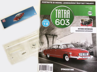Časopis č.102 stavebnice modelu TATRA 603 od firmy DeAgostiny přináší díly interiéru B sloupku. V příštím časopisu č.104 naleznete: