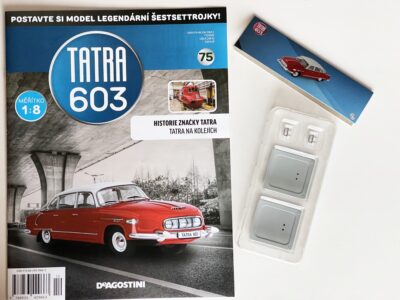Časopis č.075 stavebnice modelu TATRA 603 od firmy DeAgostiny přináší kryty baterií. V příštím časopisu č.076 naleznete: