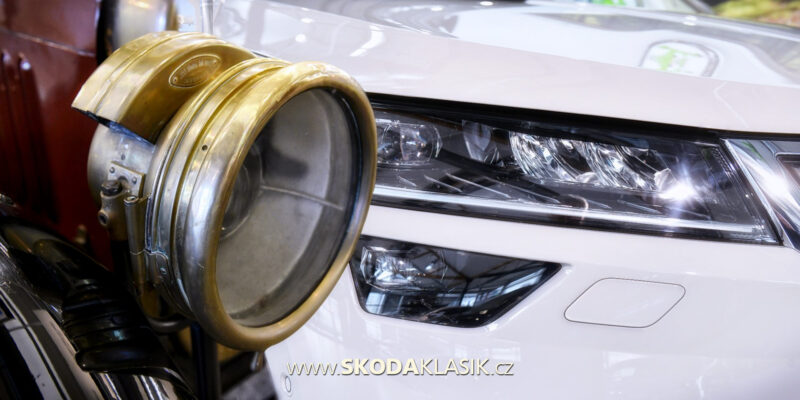 První mladoboleslavské automobily, jako třeba tato LAURIN & KLEMENT VOITURETTE A z roku 1906, mohly být na přání vybaveny acetylénovým přídavným osvětlením. Osvětlení totiž v té době ještě nebylo povinnou součástí výbavy.